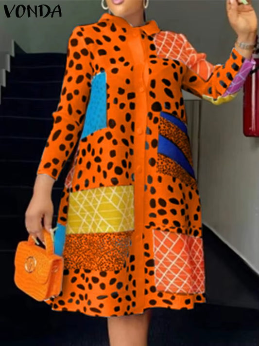 Professional O Neck Half Sleeve Leopard Printed Dress