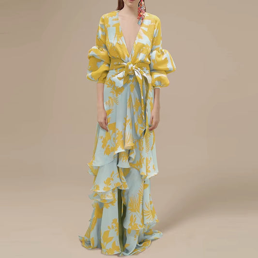 Bohemian Long Printed Sexy V Neck Loose Dress