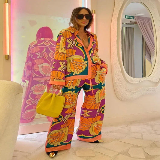 Long Sleeved Chic Lapel Blouse & Straight Pants Set