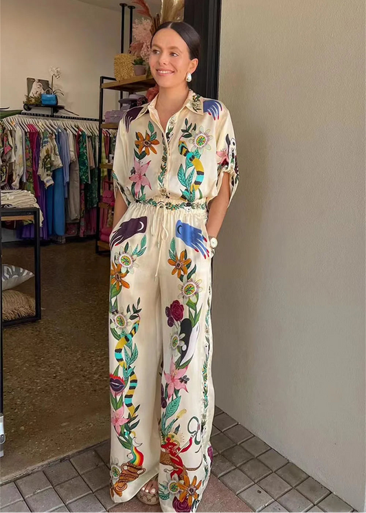 3/4 Sleeve Casual Floral Print Backless Jumpsuit