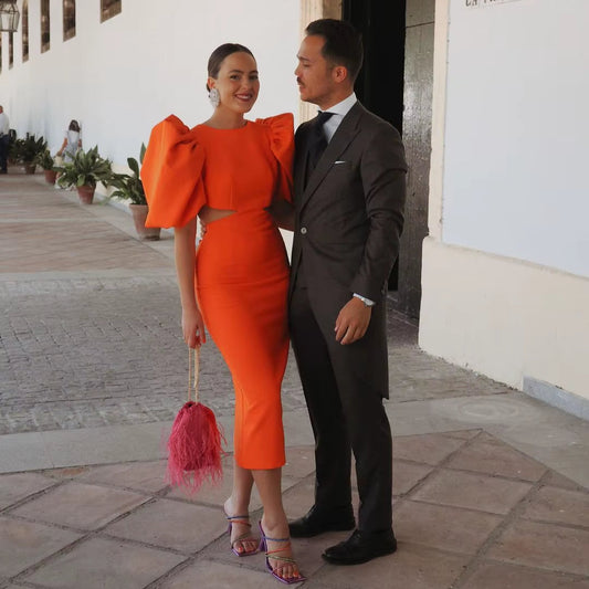 Professional O Neck Half Sleeve Leopard Printed Dress